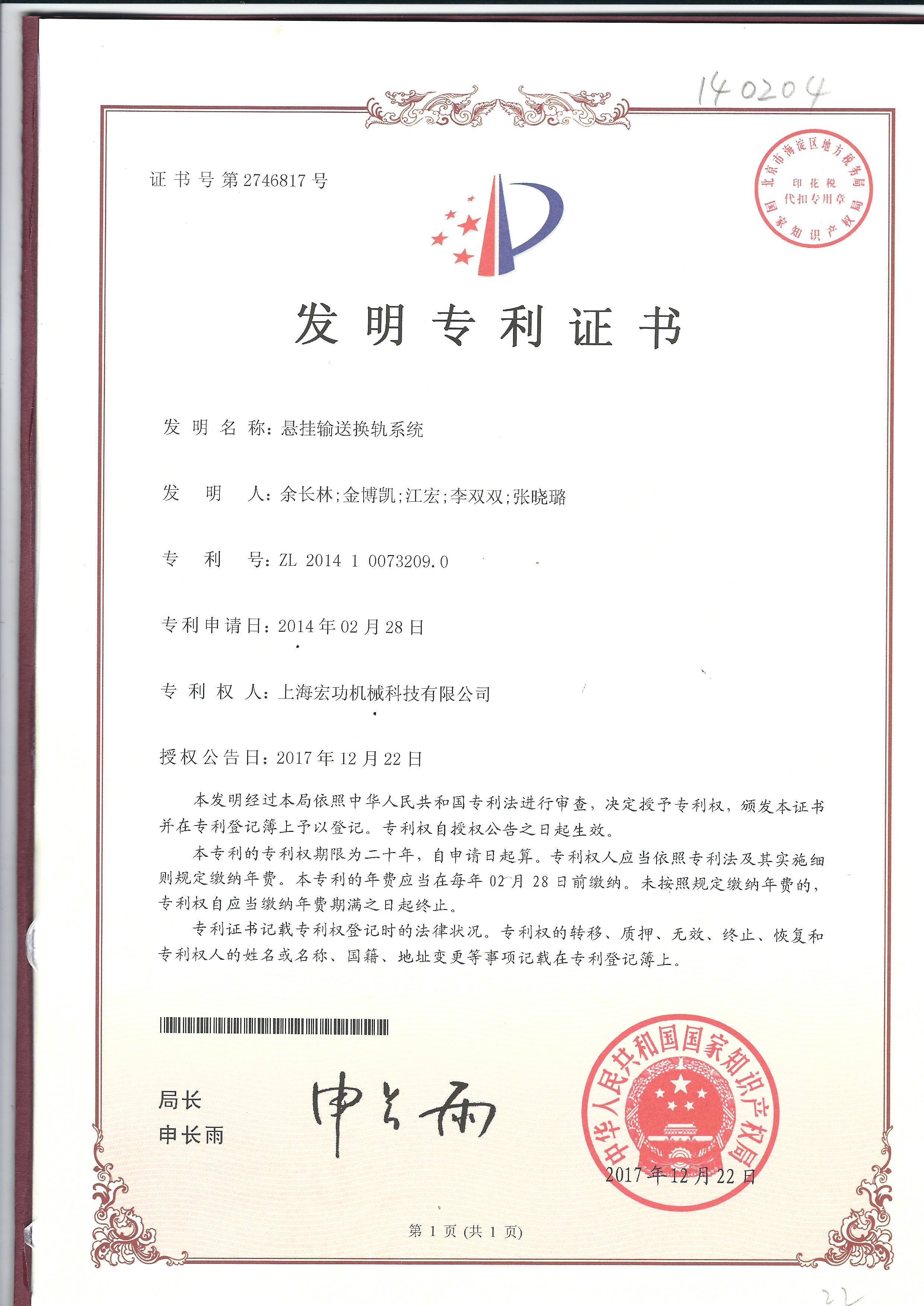 (發(fā)明專利)懸掛輸送換軌系統(tǒng)