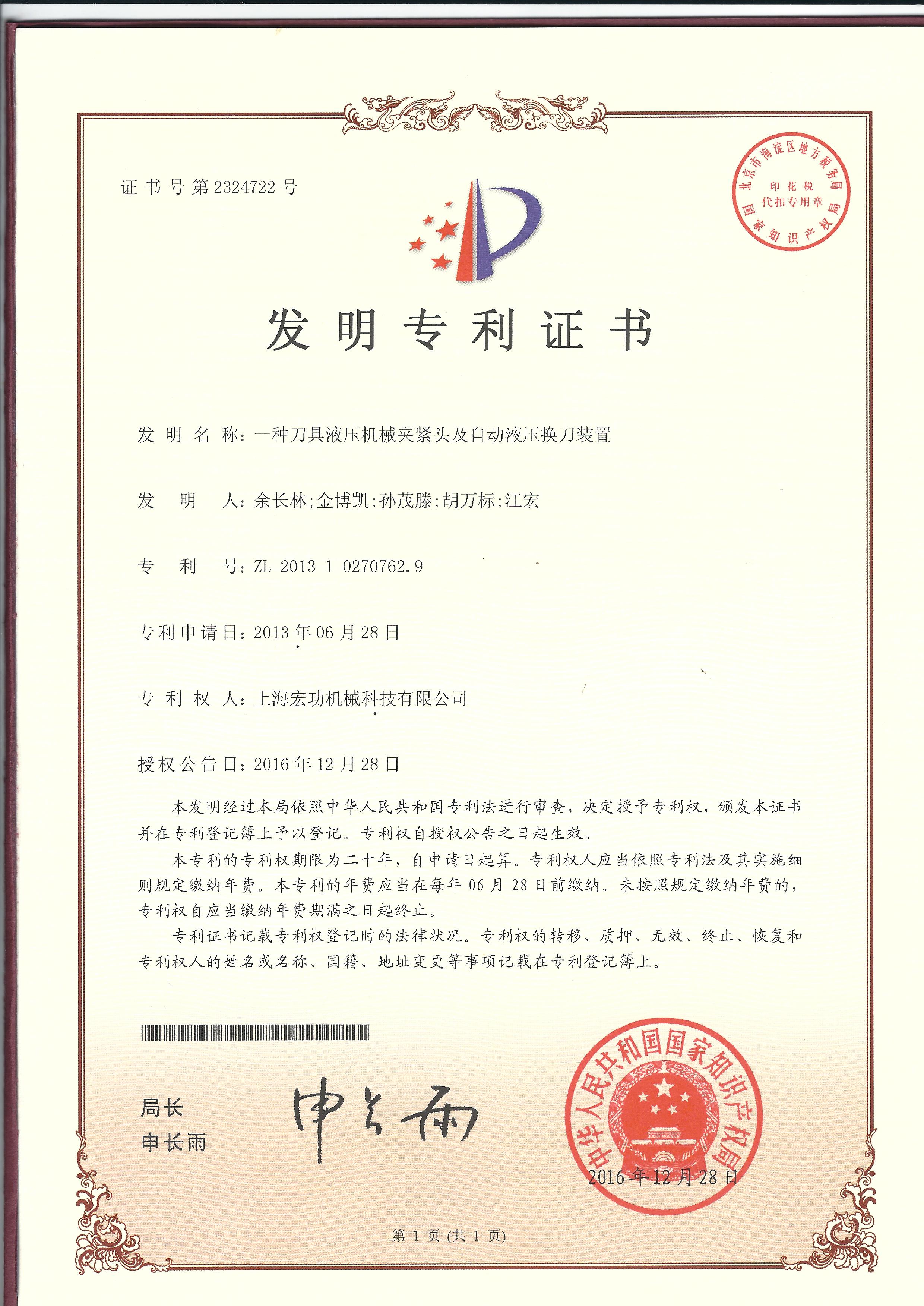 (發(fā)明專利)一種刀具液壓機(jī)械夾緊頭及自動液壓換刀裝置