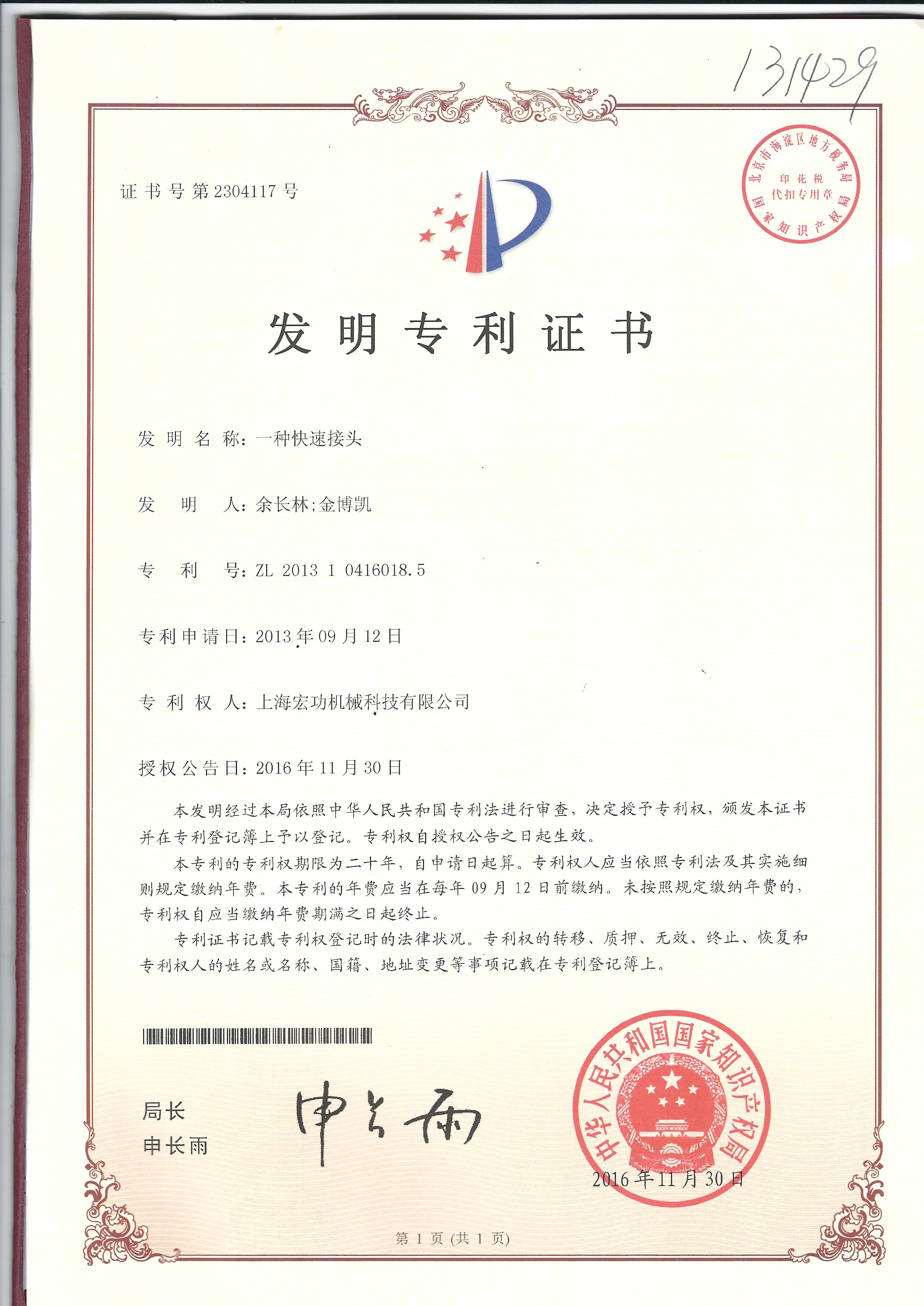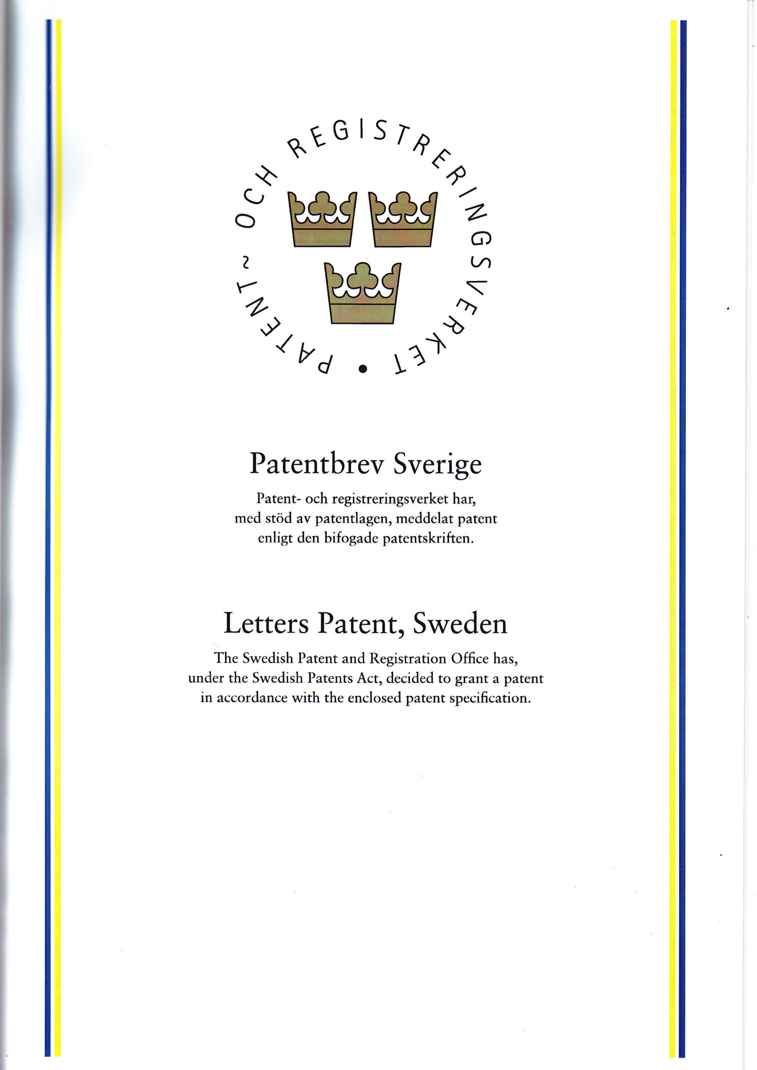 瑞典專利證書