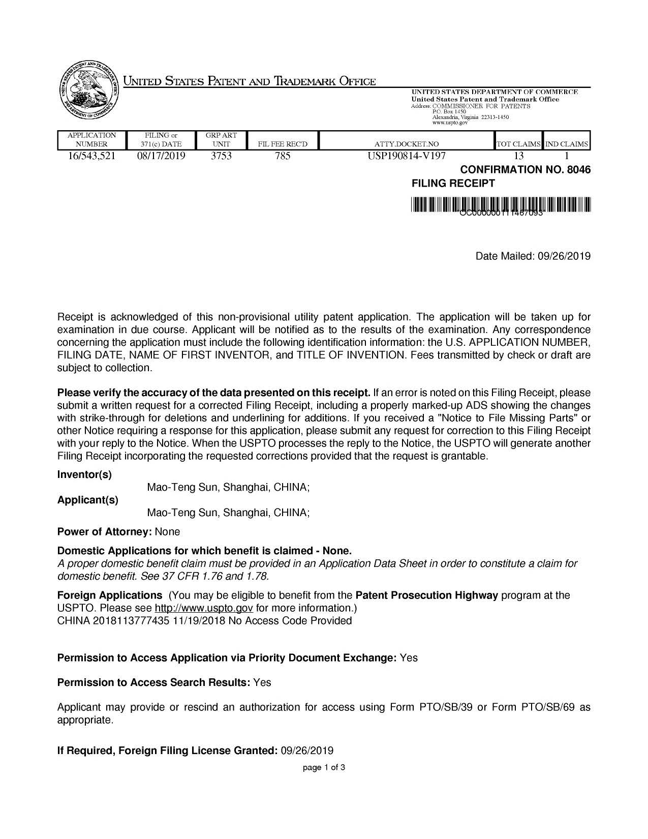 美國受理文件