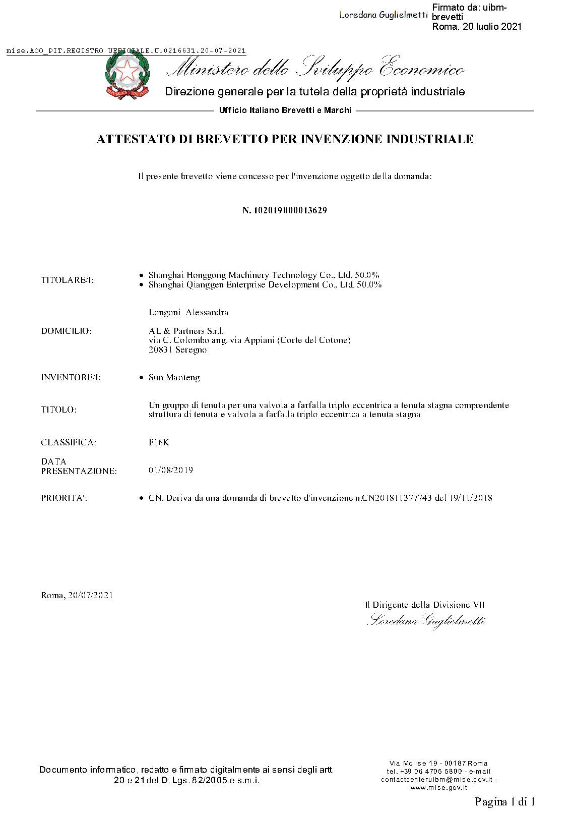 (意大利發(fā)明專利)一種密封蝶閥