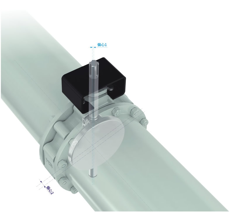 閥桿偏離管道及閥門(mén)中心線,這兩個(gè)偏心的目的是在閥門(mén) 開(kāi)關(guān)行程中,減少閥座與蝶板密封圈之間的摩擦